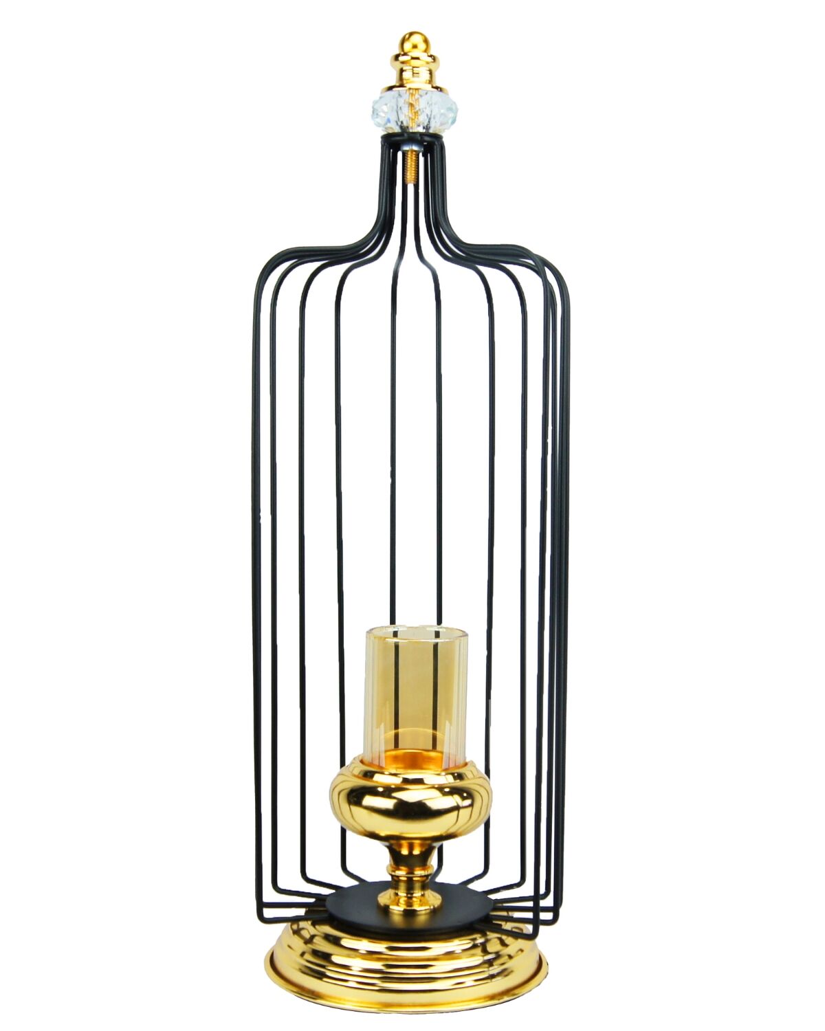 Elegant Black and Golden Colored Candle Stand (Large In Size) with Crystal on Top, Metal Made with Glass Pot