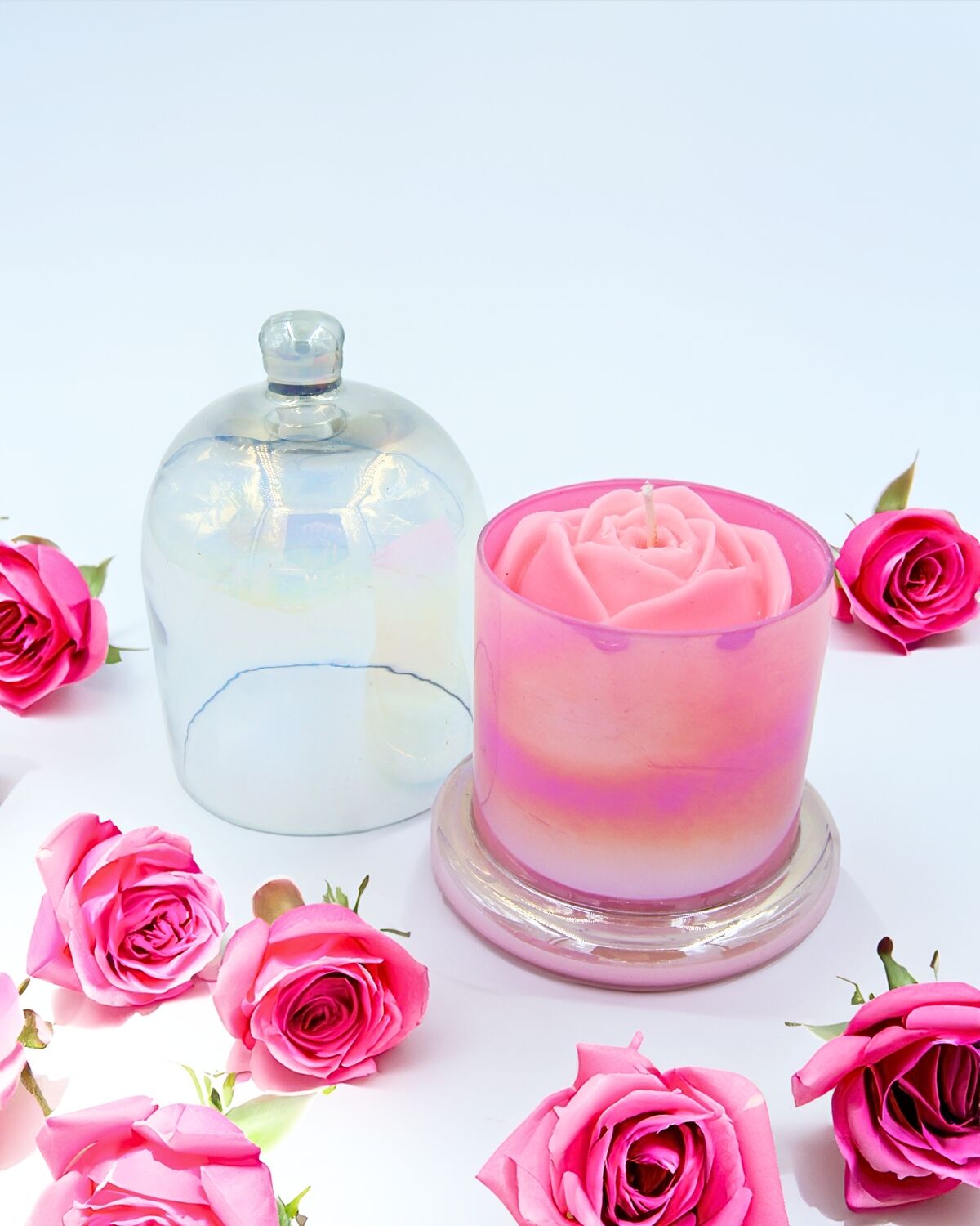 HomeScented CandlesJar Scented Candles Elegant Glass Dome Jar Scented Candle Decorated With Pink Rose – For Home Decor and Festival Gifting