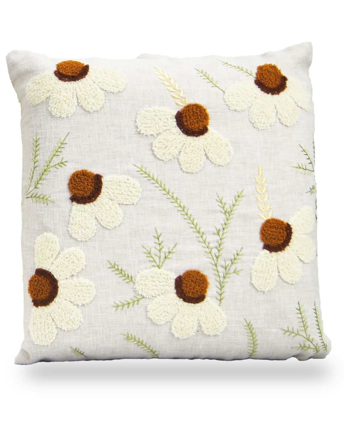 Ivory Colored Floral Designed Cushion Covers -Made Of Khadi Cotton With Thread Work Done Set Of 5 (Size: 16″*16″)